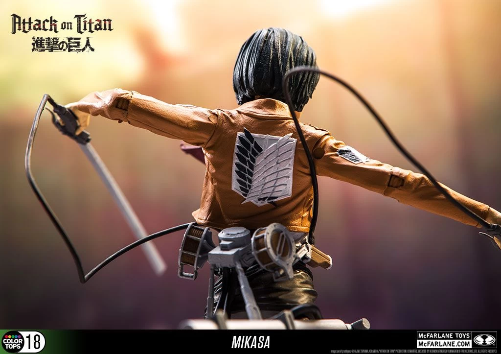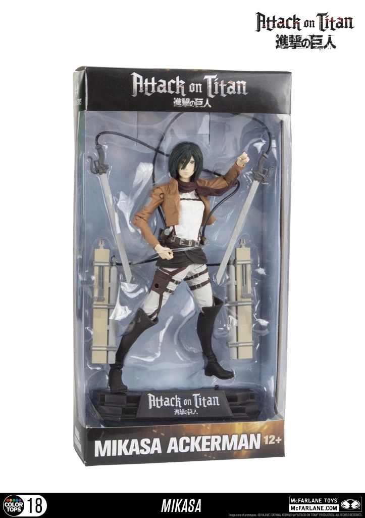 McFarlane Color Tops Figur von Mikasa Ackerman im klassischen 7-Inch Format aus der erfolgreichen Mangaserie Attack on Titan. Mikasa Ackerman kommt mit mehreren Waffen als Zuzbehörteile.