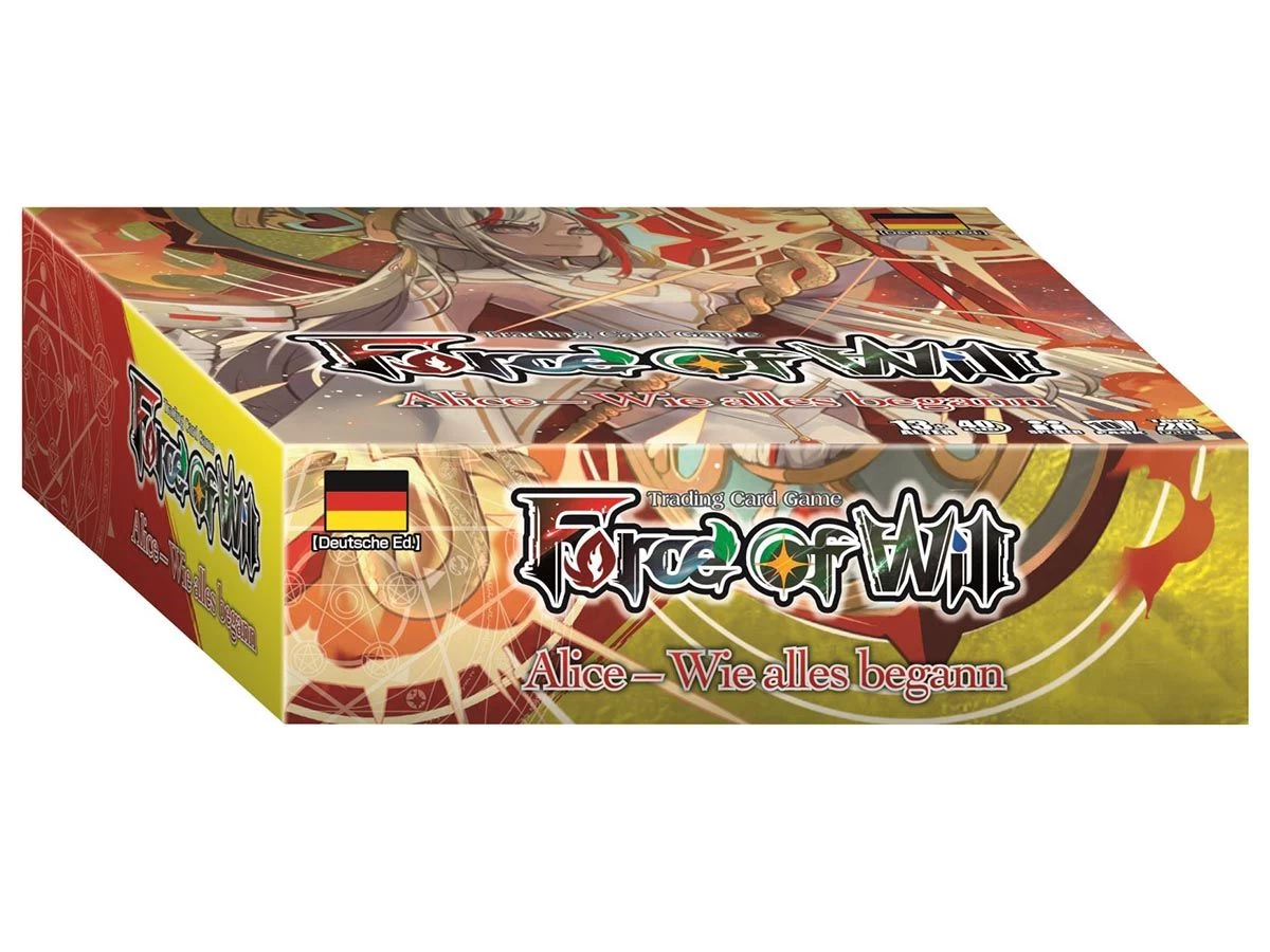 Booster Display „Alice – Wie alles begann“zum Sammelkartenspiel Force of Will in Deutsch.