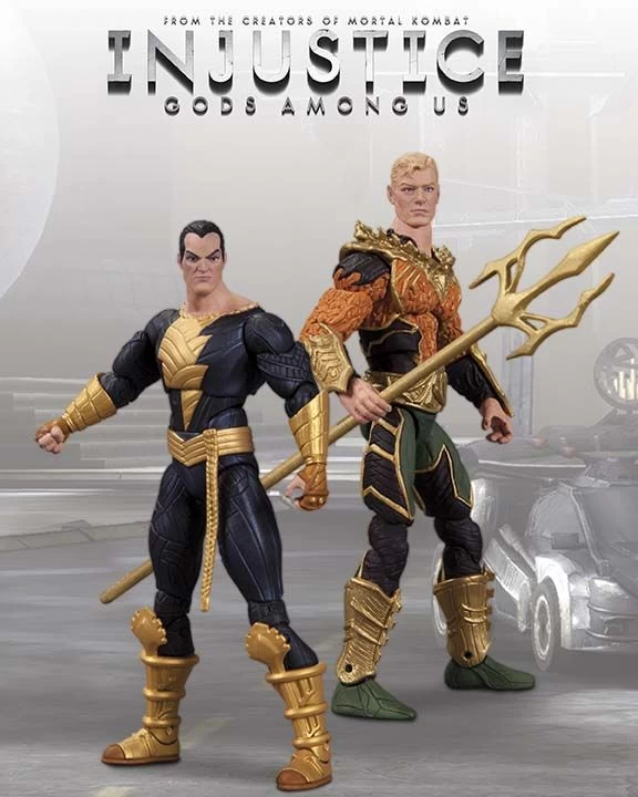 DC Direct Actionfiguren 2-Pack mit Aquaman und dem Bösewicht Black Adamaus dem neuen Videospiel-Blockbuster „Injustice: Gods Among Us“.