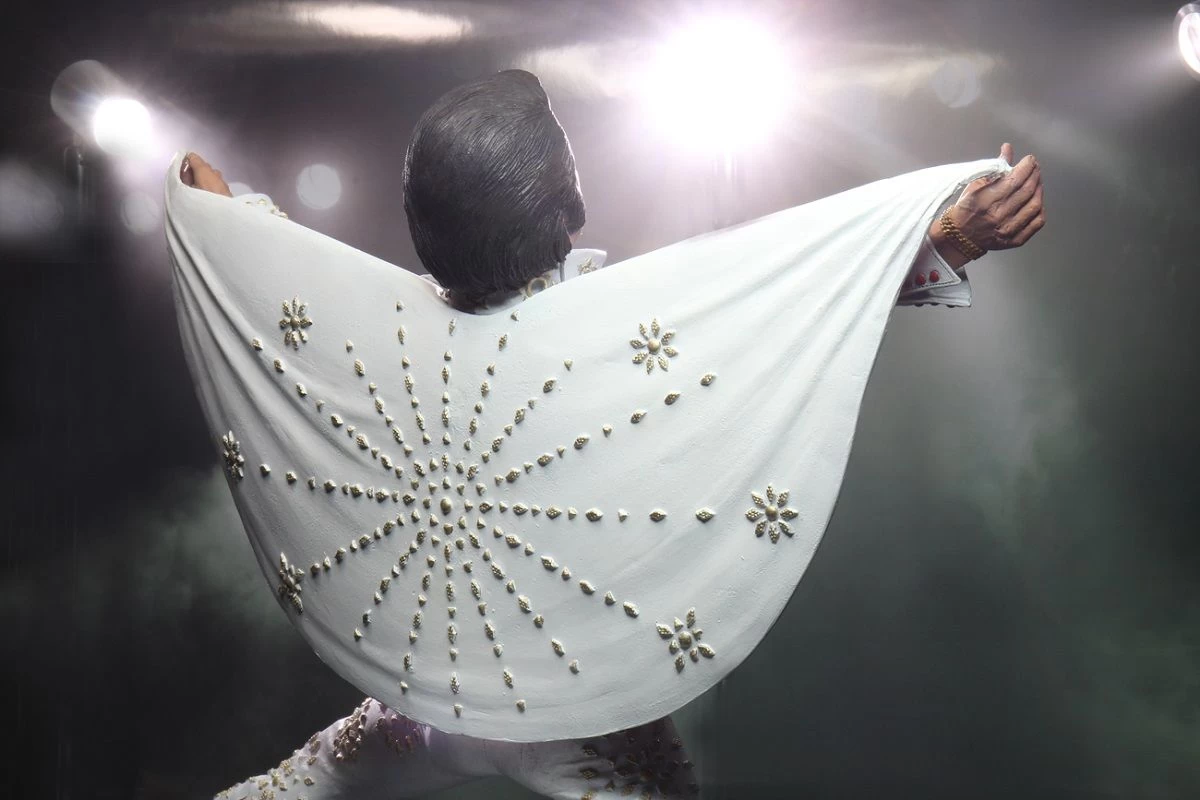 Der „King of Rock ’n‘ Roll“ Elvis Presley mit einem seiner legendärsten Outfits der `72er Tour.