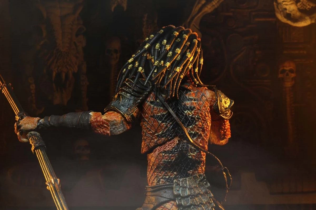 Der Stalker Predator aus Predator 2 in einer unnachahmlich detailierten Version. Predator 2 erweiterte damals das Universum, welches der ursprüngliche Film aufzeigte und führte neue Yautja ein. Einer von diesen ist der Stalker Predator. Diese Figur des Stalker Predators besitzt einen Körper voller Gelenke, eine Auswahl austauschbarer Hände und zwei Köpfe, von denen einer unmaskiert ist. Weiteres Zubehör sind die typischen Shuriken, Plasmacaster, der unverkennbare Combistick und ein Schädel eines seiner „Beutetiere“.
