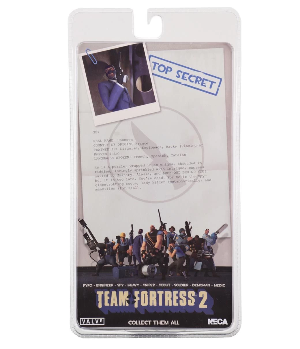 Detaillierte NECA Actionfigur von The Spy aus dem zweiten Teil des Multiplayer-Shooters Team Fortress von Valve.