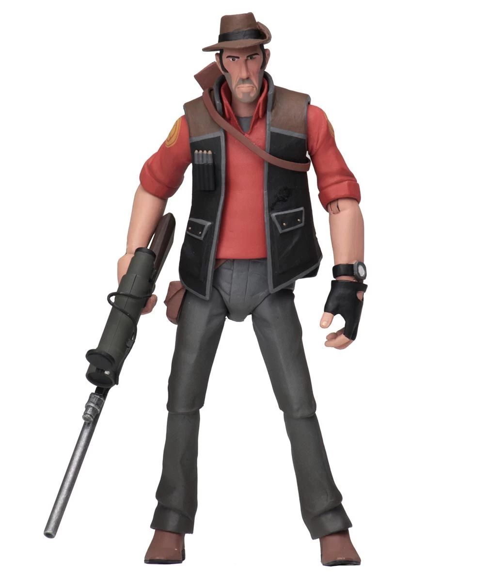 Detaillierte NECA Actionfigur von The Sniper aus dem zweiten Teil des Multiplayer-Shooters Team Fortress von Valve.