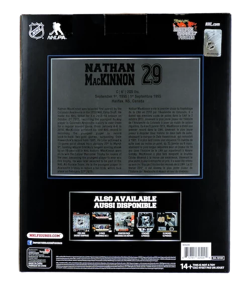 Center Nathan MacKinnon von den Colorado Avalanche von Import Dragons. Eishockey Spielerfigur von Nathan MacKinnon, Colorado Avalanche. Die NHL Action Figur besticht durch ihre detaillierte Verarbeitung und steht ihrem großen Vorbild in nichts nach.